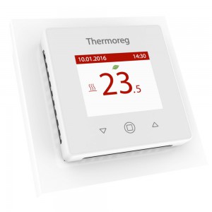 Multifunktionell programmerbar termostat med touchkontroll och färgskärm. Utrustad med ett intelligent system för analys av värmeförluster och med en effektiv energisparfunktion, och ett särskilt sätt att styra värmen för parkett och laminat.